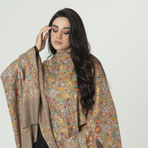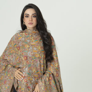 Vintage Kalamkari Frost brown Pashmina – Subtle Perfection