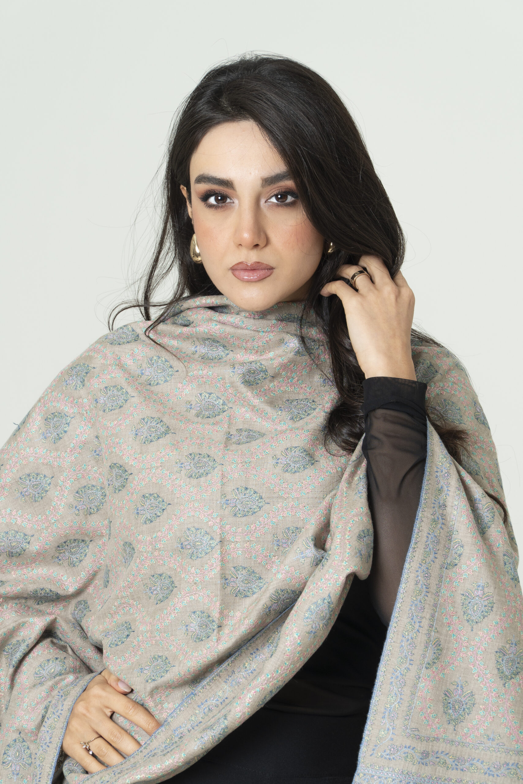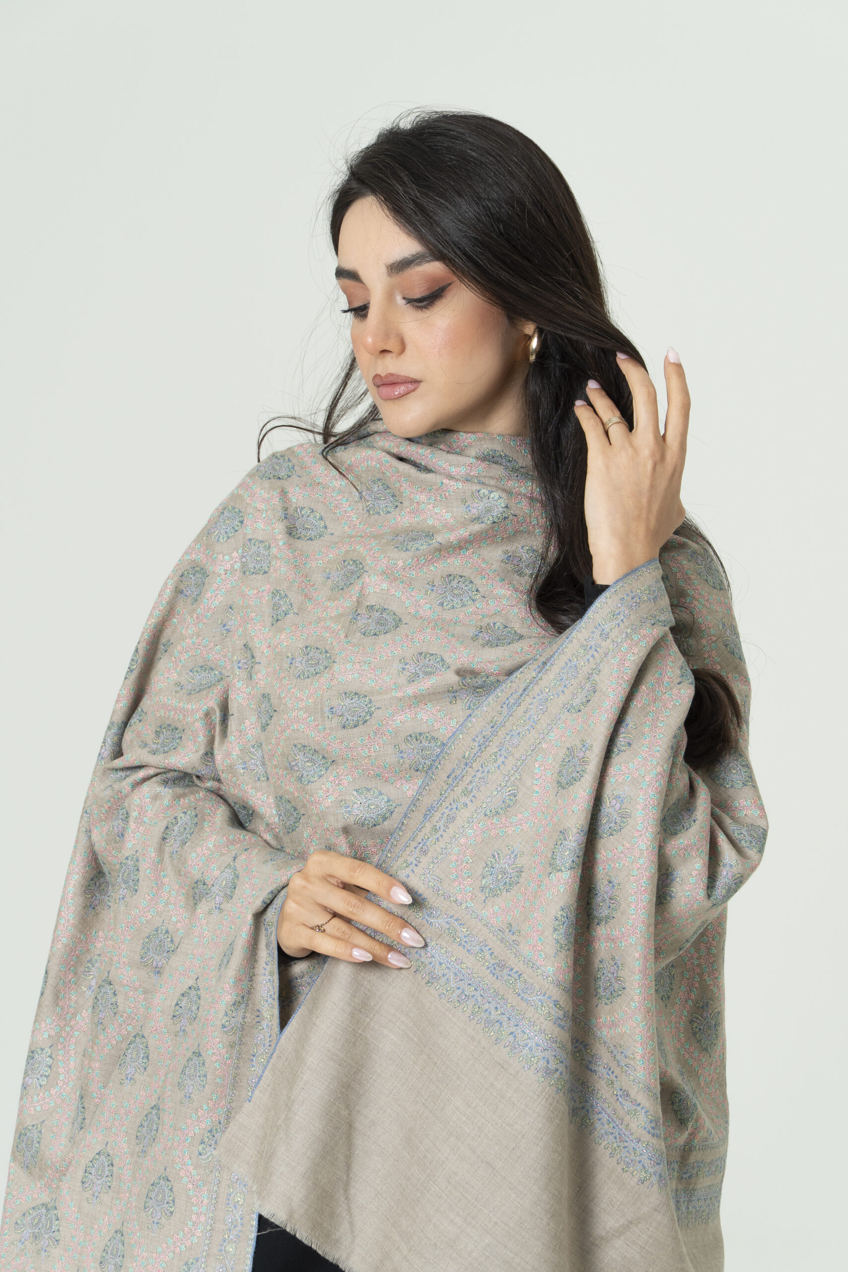 Royal Ivory Pashmina – Handwoven Grace – Vintage Shawl